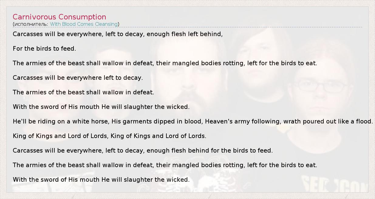 А как ты думаешь, о чем песня "Carnivorous Consumption" ?