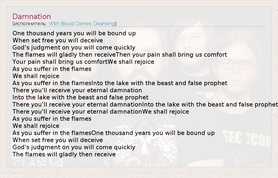 There you'll receive your eternal damnationInto the lake with the beast and false prophet