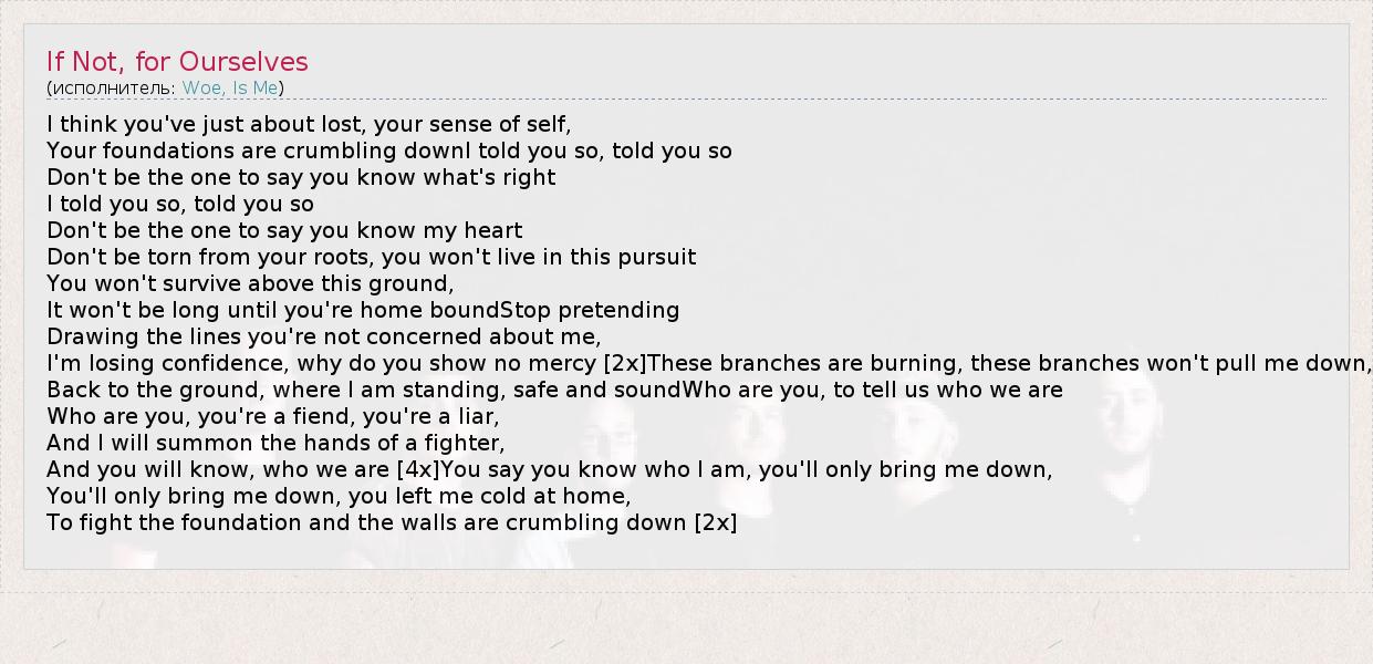 А как ты думаешь, о чем песня "If Not, for Ourselves" ?
