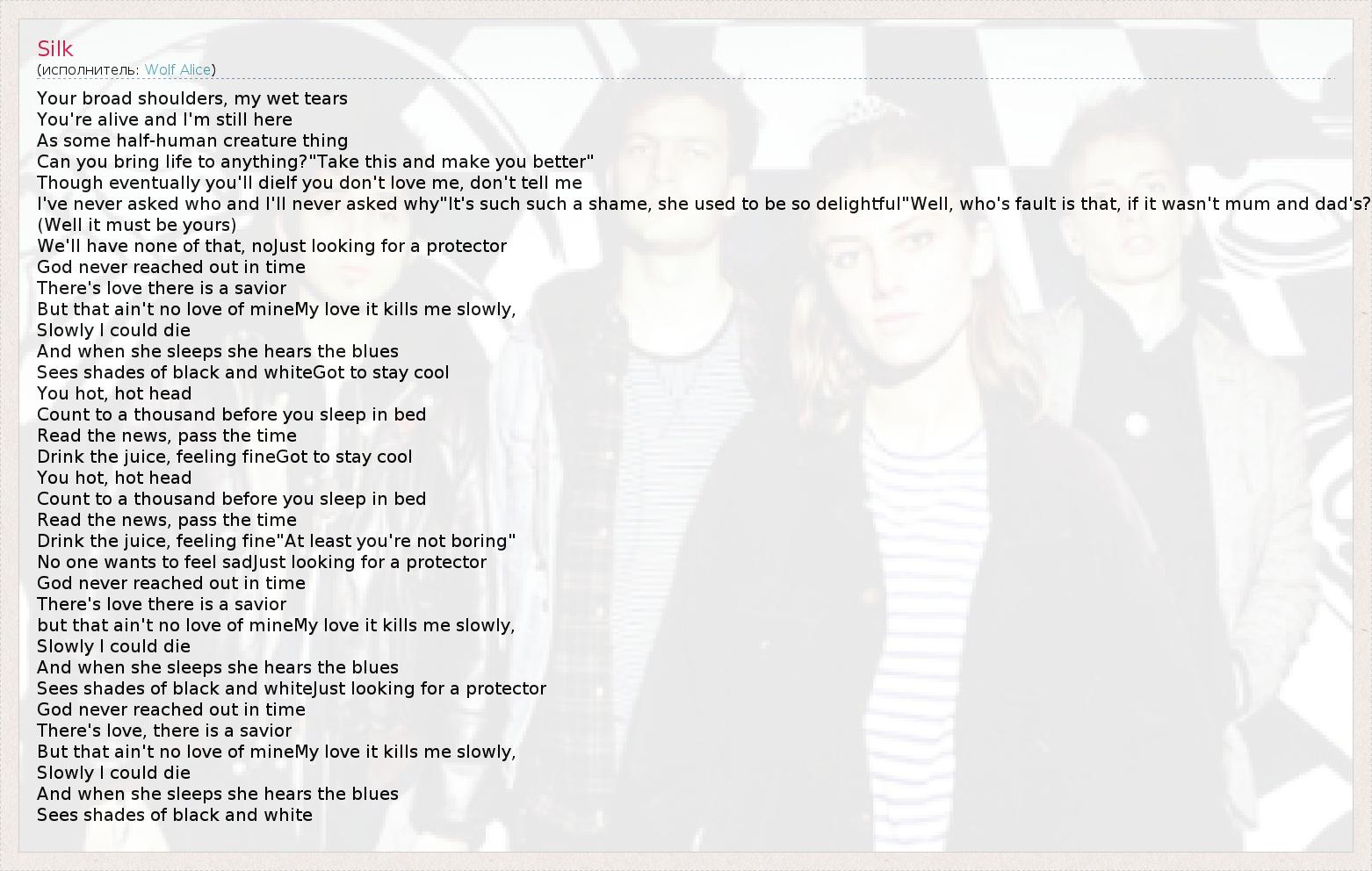 Молодая британская группа Wolf Alice проделала большой/сложный путь, чтобы в одночасье захватить первые полосы музыкальных изданий, записав лучший дебютный альбом года. Продюсером записи выступил Майк Кросси, умеющий угодить публике, если судить по коммерчески успешным релизам The View и The Courteeners.