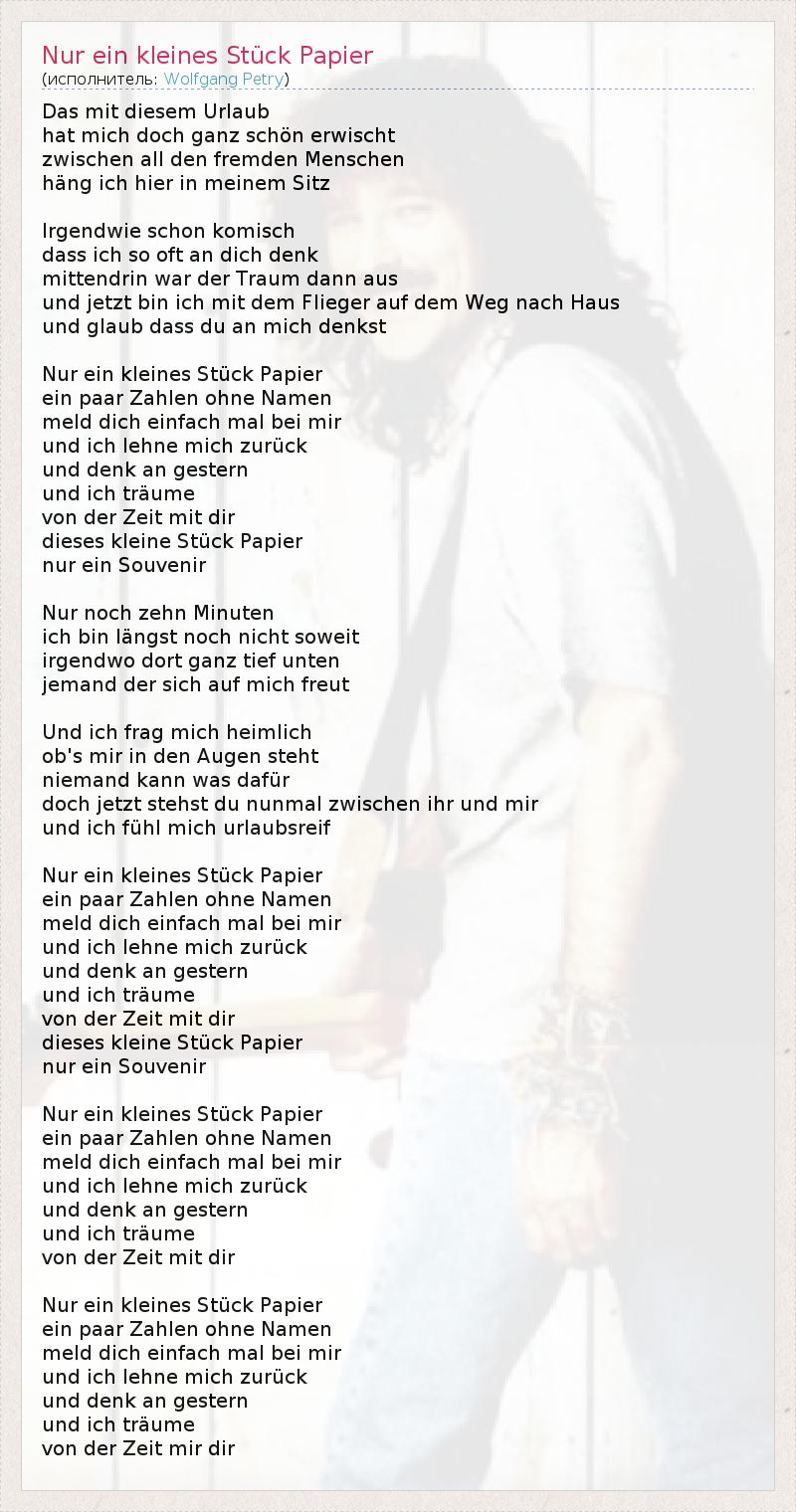 ГлавнаяИсполнителиWolfgang PetryNur ein kleines Stück Papier