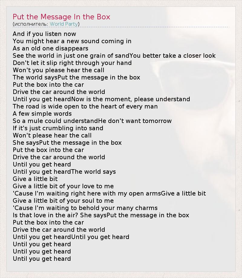 А как ты думаешь, о чем песня "Put the Message In the Box" ?