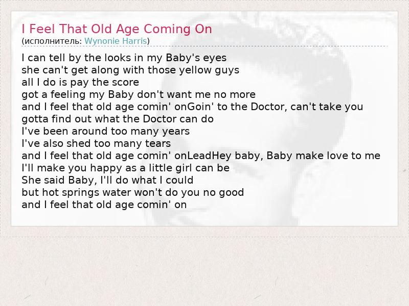А как ты думаешь, о чем песня "I Feel That Old Age Coming On" ?