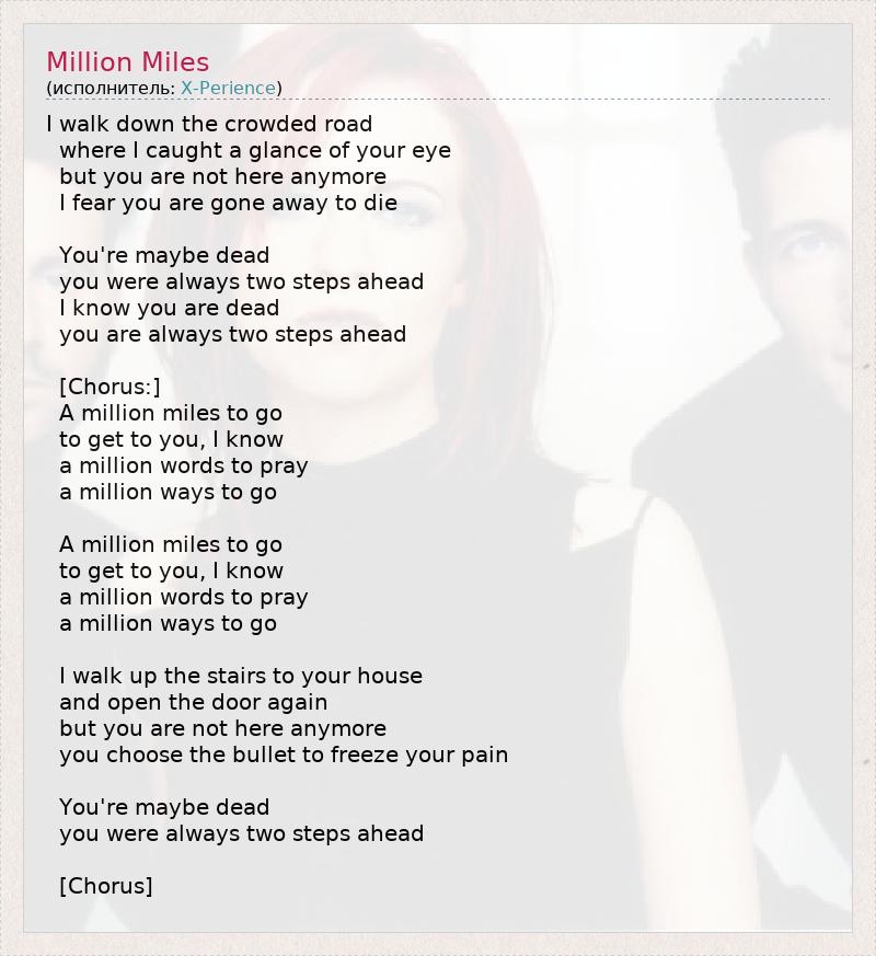 А как ты думаешь, о чем песня "Million Miles" ?