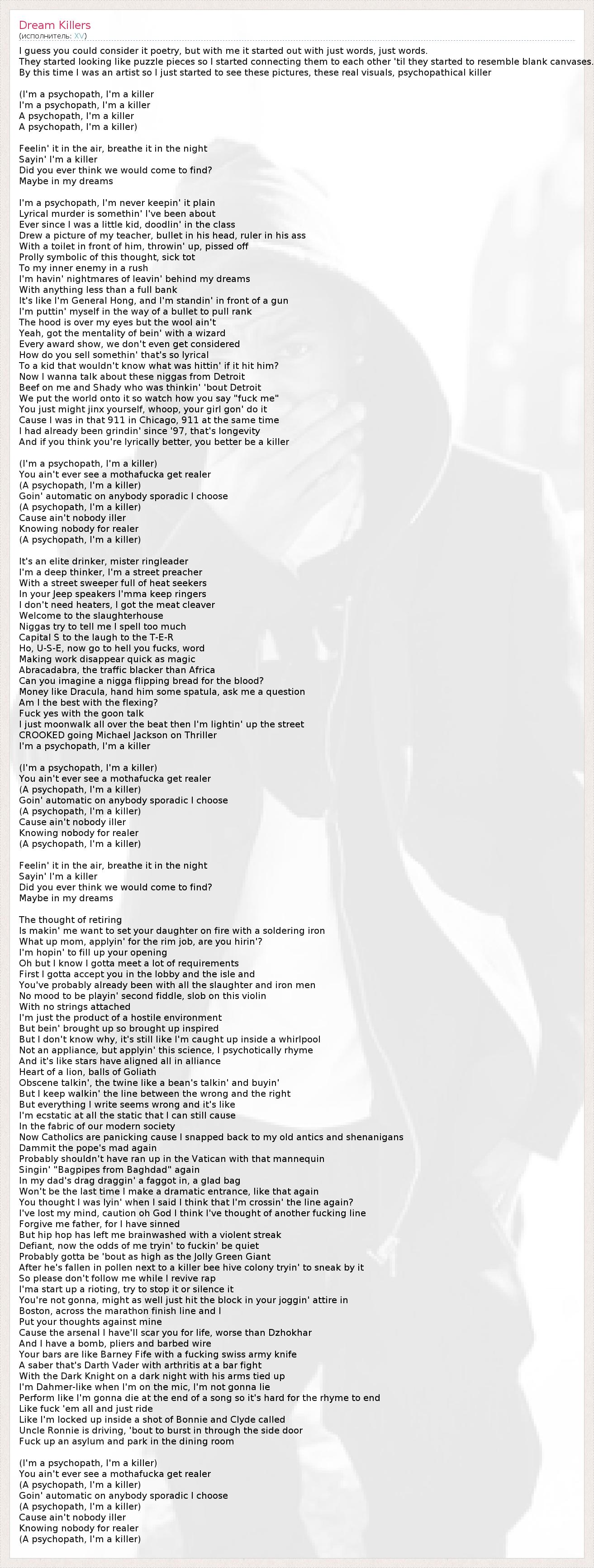 (I'm a psychopath, I'm a killer)
