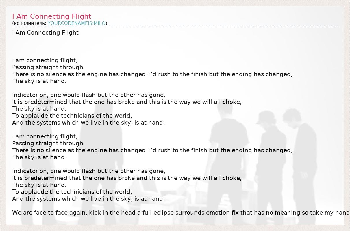 А как ты думаешь, о чем песня "I Am Connecting Flight" ?