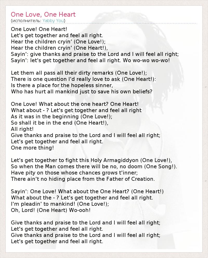 А как ты думаешь, о чем песня "One Love, One Heart" ?