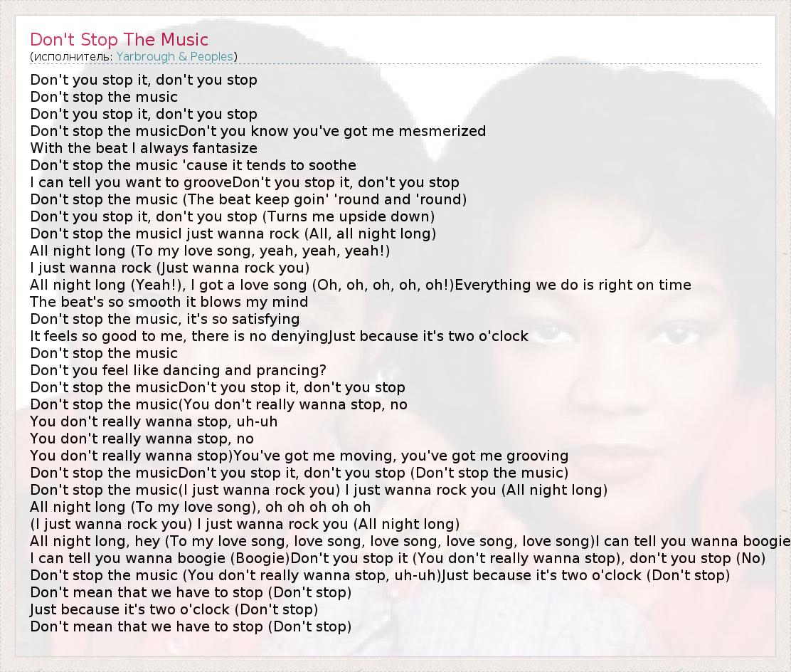 Don't stop the musicDon't you stop it, don't you stop (Don't stop the music)