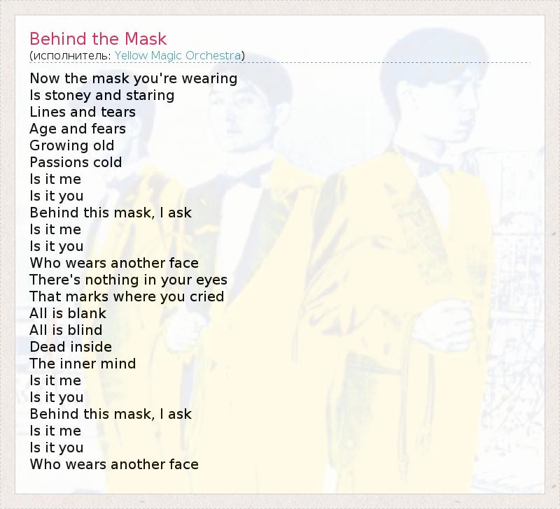 А как ты думаешь, о чем песня "Behind the Mask" ?