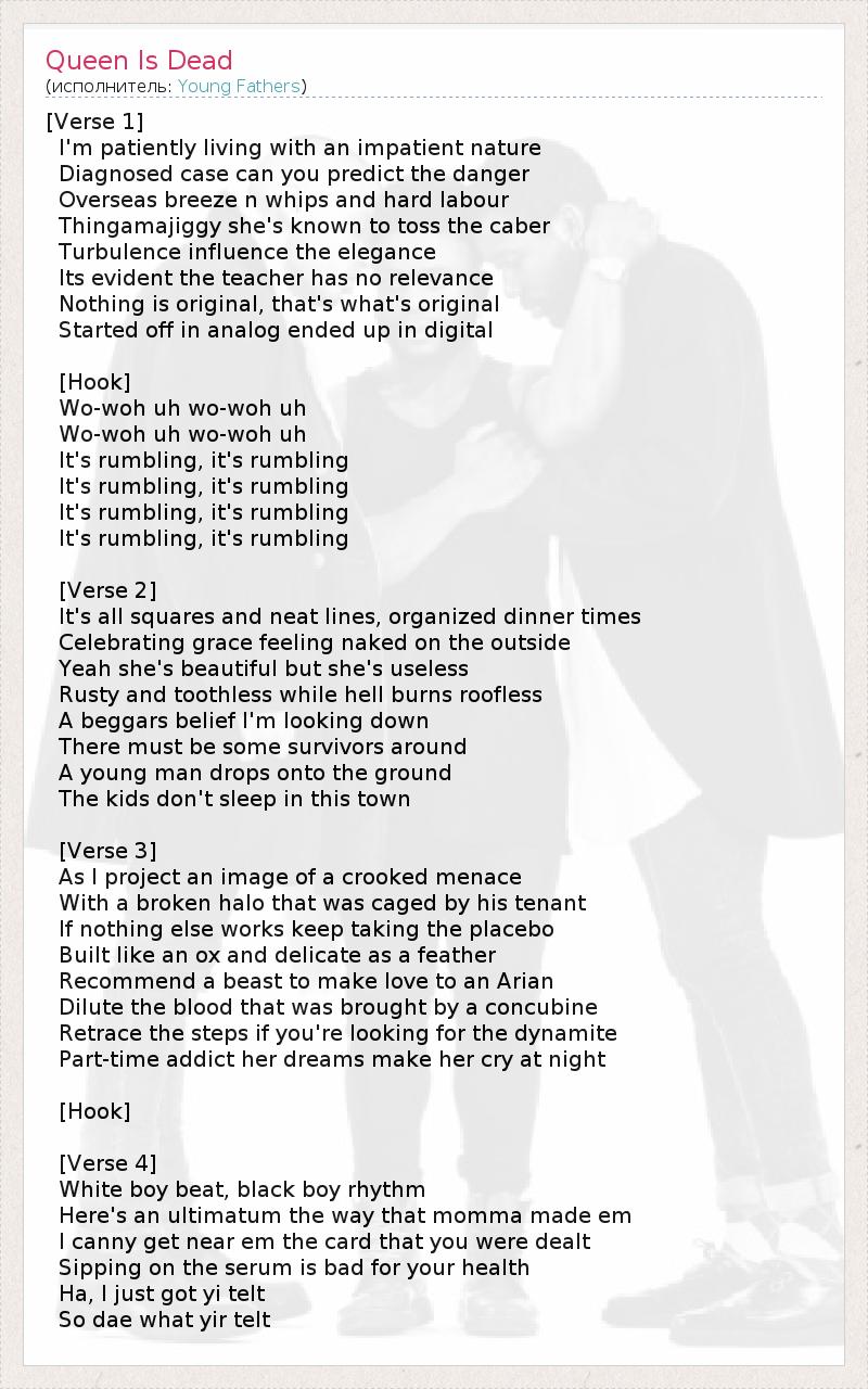 А как ты думаешь, о чем песня "Queen Is Dead" ?