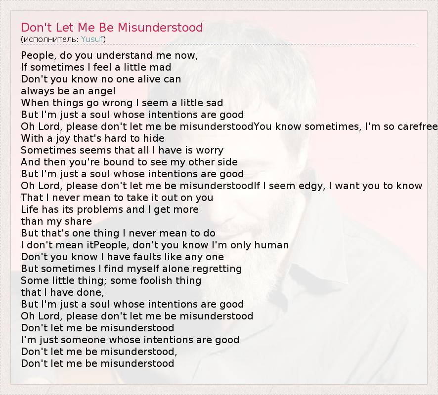 Oh Lord, please don't let me be misunderstoodYou know sometimes, I'm so carefree