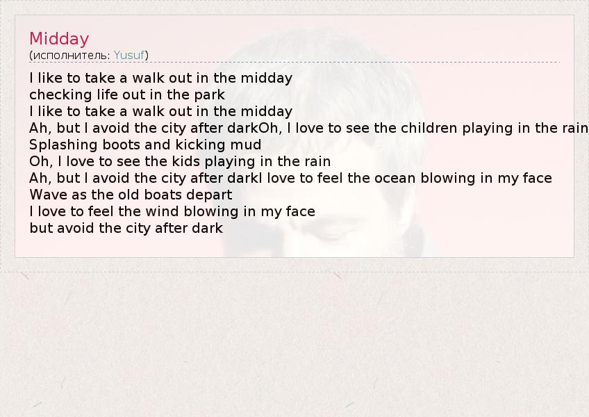 Это интересно:Cat Stevens обратился в ислам в 1977 году после того, как пережил клиническую смерть. В 1979 году он прнял имя Yusuf Islam и стал активным защитником религии. Недавно вышел его первый альбом "An Other Cup" под именем Yusuf.