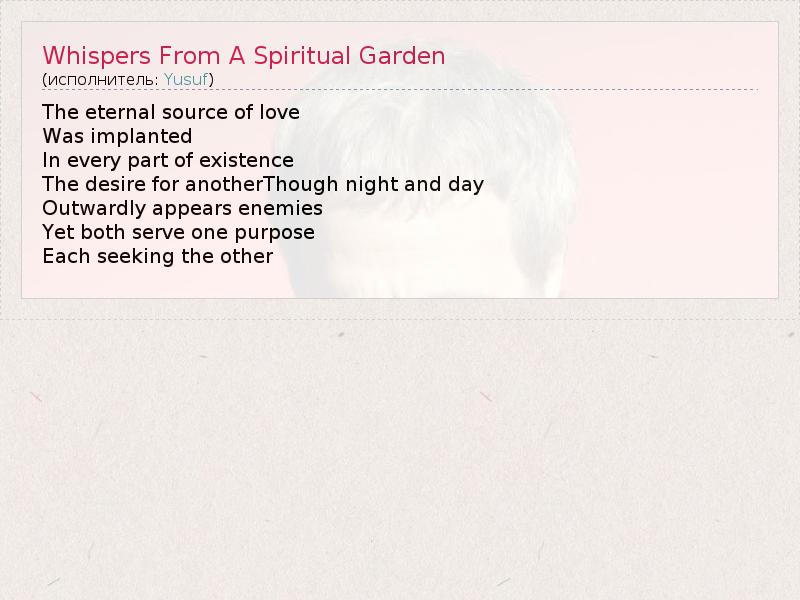 ГлавнаяИсполнителиYusufWhispers From A Spiritual Garden