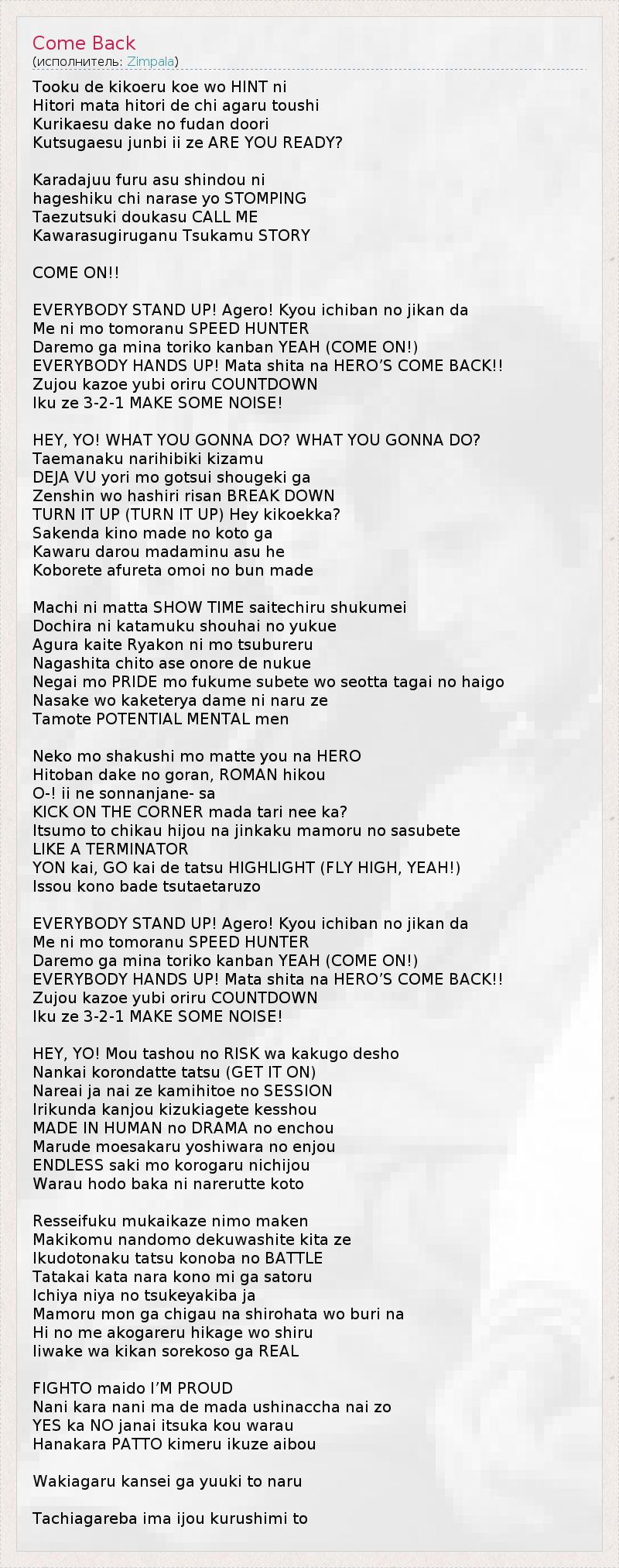 EVERYBODY HANDS UP! Mata shita na HERO’S COME BACK!!