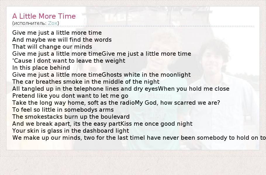 А как ты думаешь, о чем песня "A Little More Time" ?