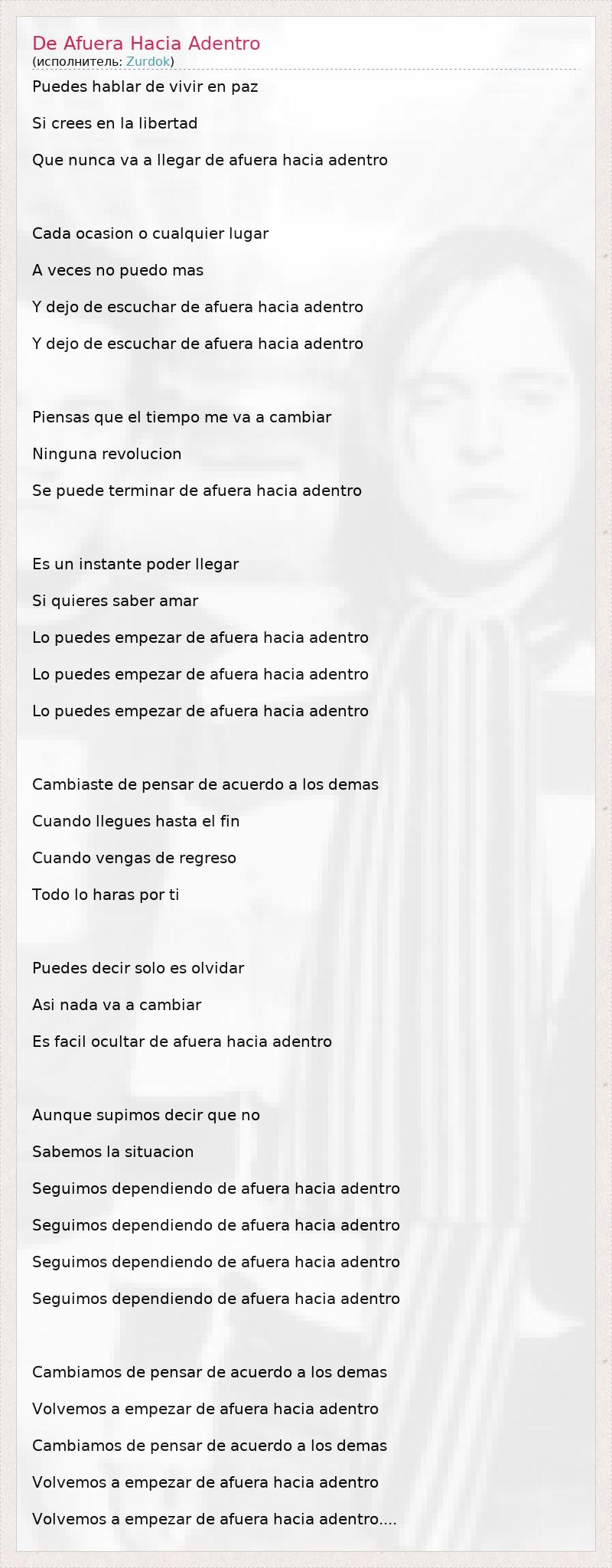ГлавнаяИсполнителиZurdokDe Afuera Hacia Adentro