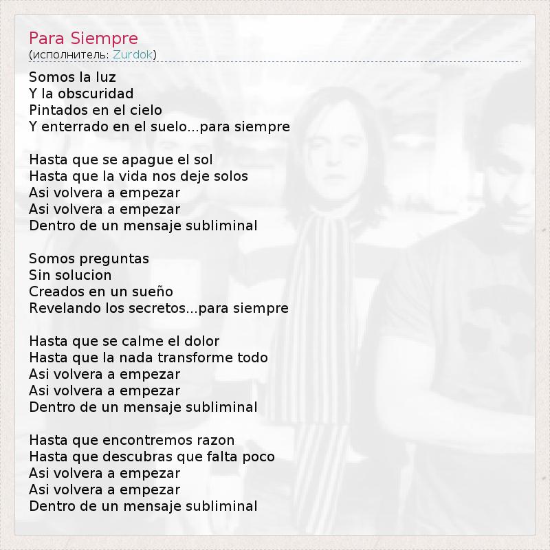 Somos ла Лус Y ла obscuridad Pintados En El Cielo Y enterrado ан -эль Suelo ... пункт Siempre Hasta Que себе apague El Sol Hasta Que La Vida н.у.к. Дечже соло Аси VOLVERA в empezar Аси VOLVERA в empezar Dentro де ООН Mensaje подсознание Somos preguntas Грех Solucion Creados Ен Ун Sueño Revelando лос Secretos ... пункт Siempre Hasta Que себе Calme эль Dolor Hasta Que ла нада transforme тодо Аси VOLVERA в empezar Аси VOLVERA в empezar Dentro де ООН Mensaje подсознание Hasta Que encontremos Razon Hasta Que descubras дие Falta росо Аси VOLVERA в empezar Аси VOLVERA в empezar Dentro де ООН Mensaje подсознание