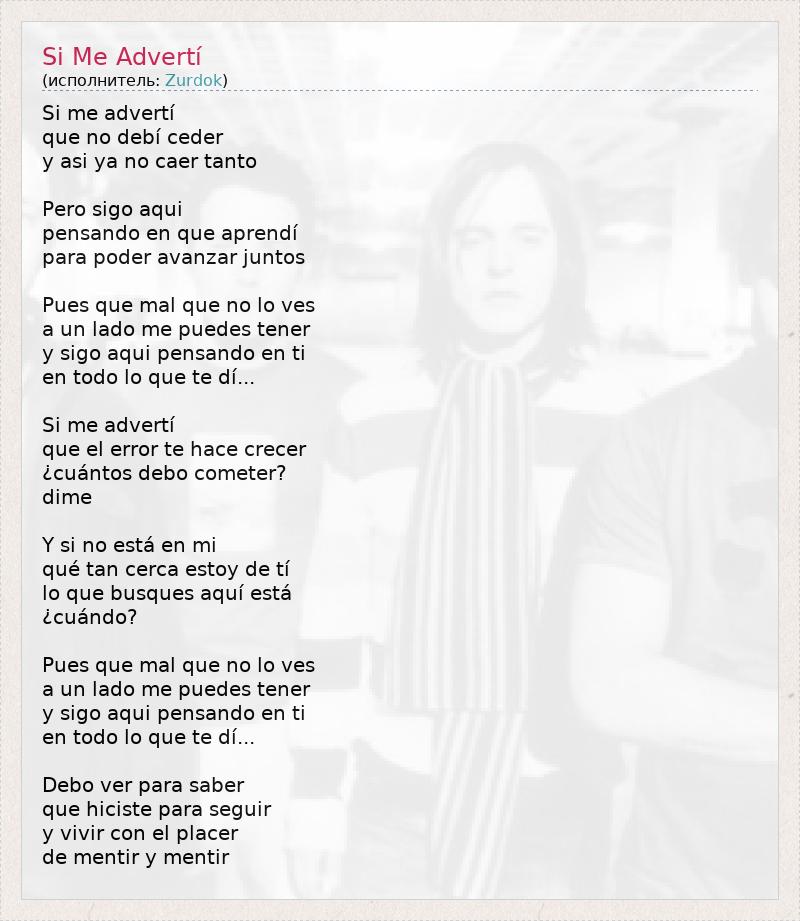 А как ты думаешь, о чем песня "Si Me Advertí" ?