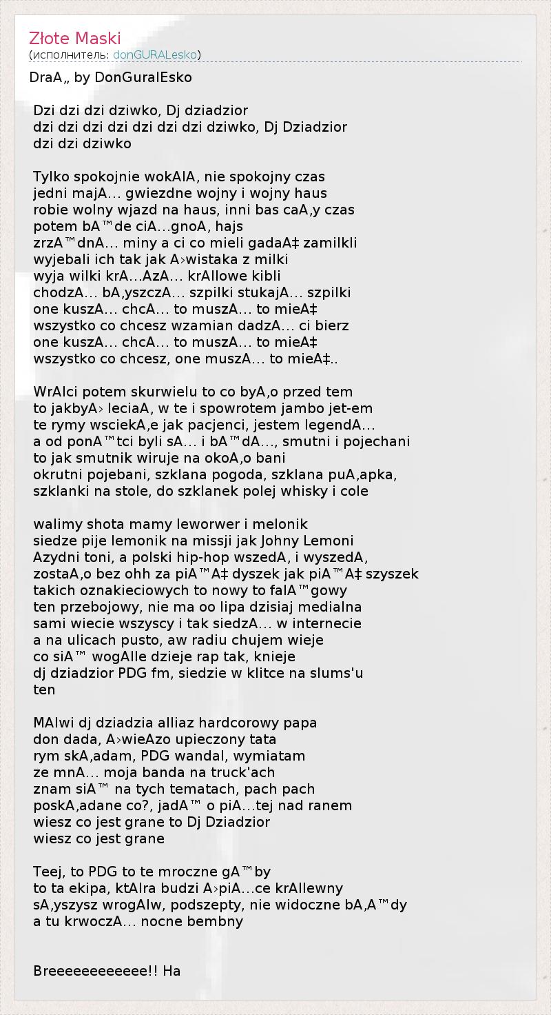 А как ты думаешь, о чем песня "Złote Maski" ?