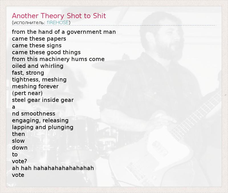 А как ты думаешь, о чем песня "Another Theory Shot to Shit" ?