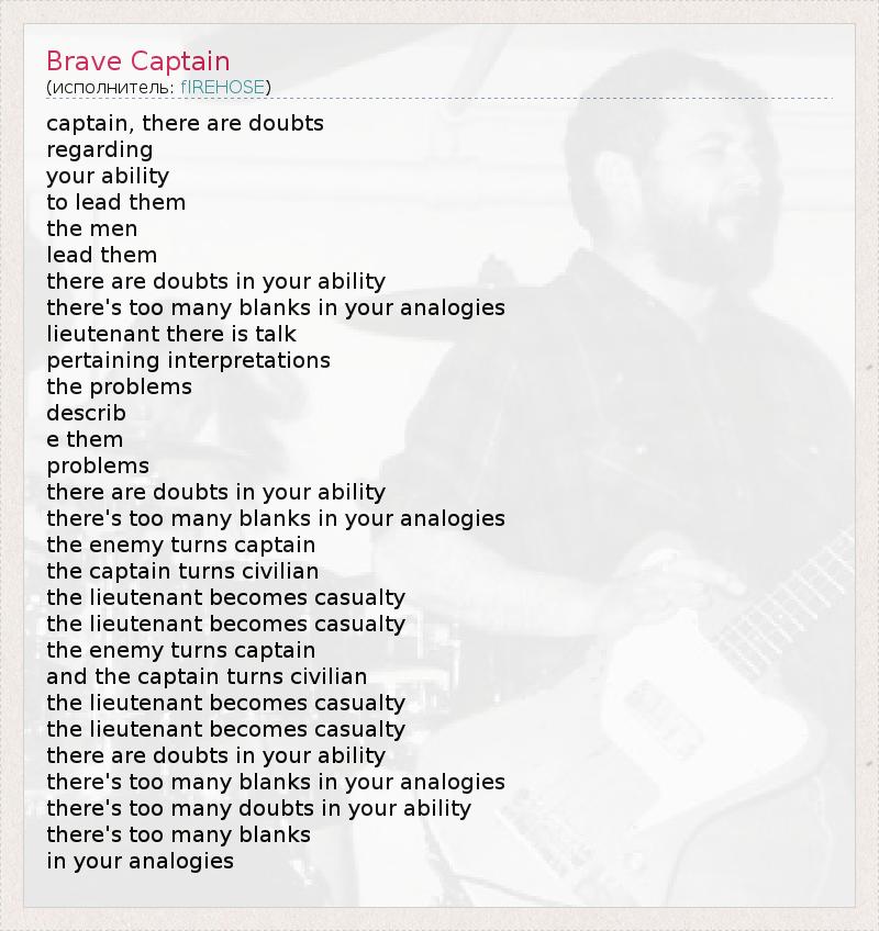 А как ты думаешь, о чем песня "Brave Captain" ?