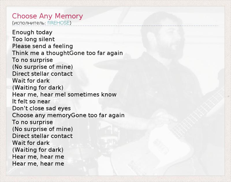 А как ты думаешь, о чем песня "Choose Any Memory" ?