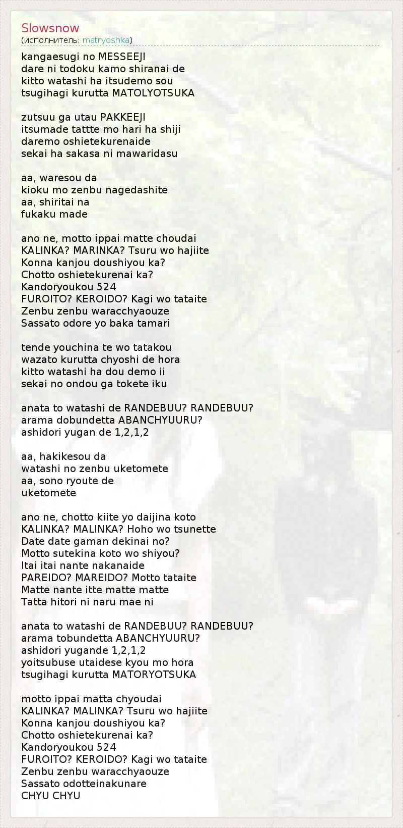KALINKA? MALINKA? Hoho wo tsunette