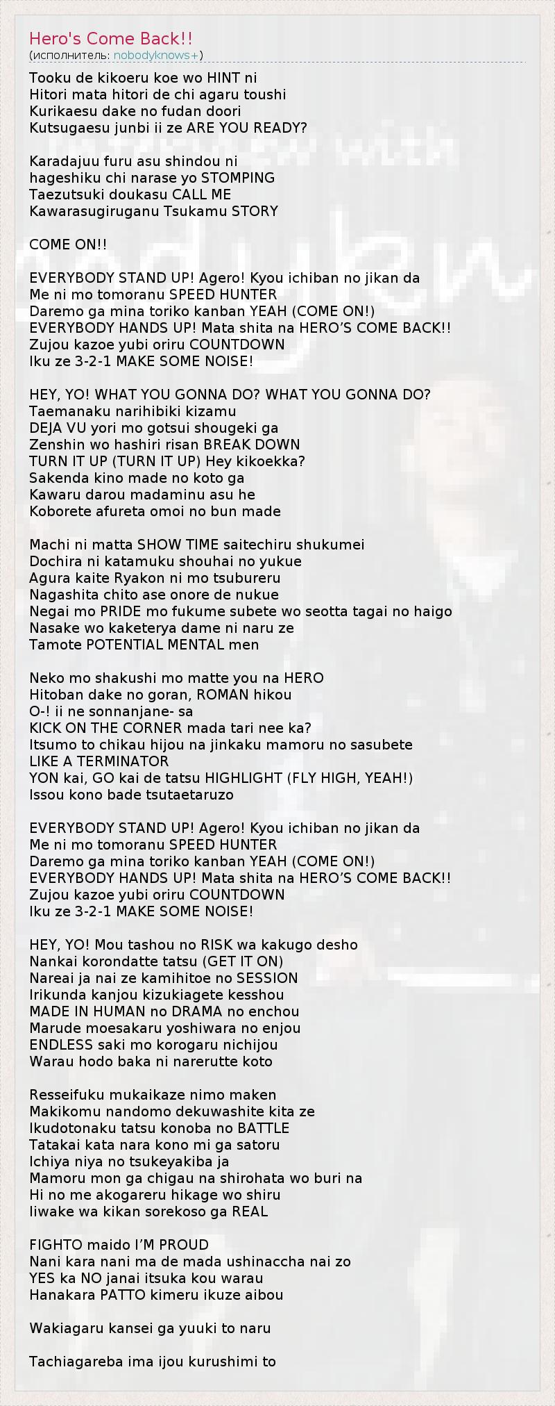А как ты думаешь, о чем песня "Hero's Come Back!!" ?